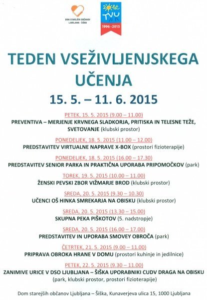 V petek, 15. maja 2015 se prične pod okriljem Andragoškega centra Slovenije vseslovenski projekt TEDEN VSEŽIVLJENJSKEGA UČENJA. V projektu sodelujemo aktivno že tretje leto.